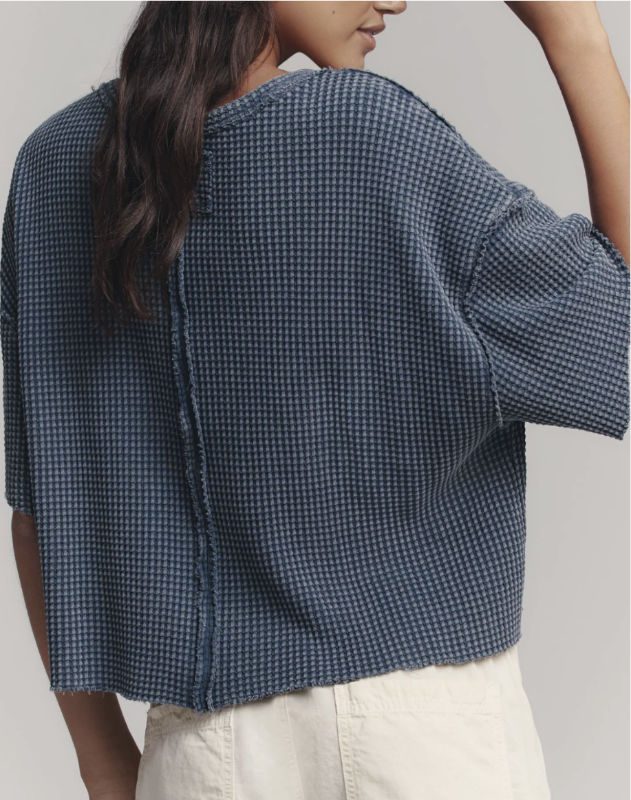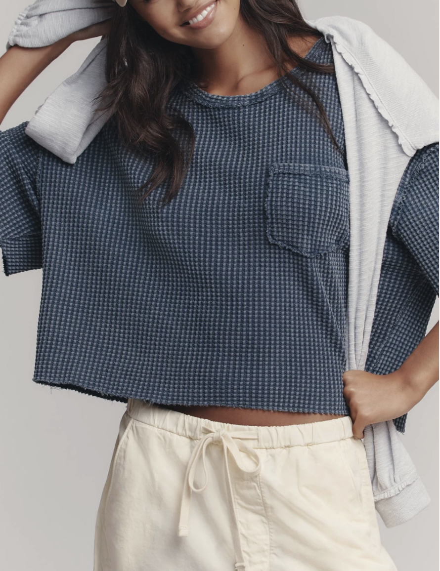 Pilcro by Anthropologie Blue Chest Pocket Waffle Cropped Tee
