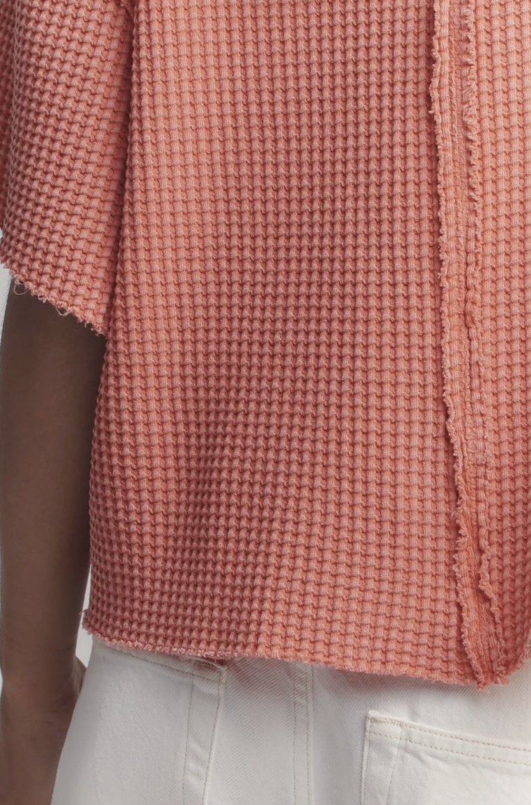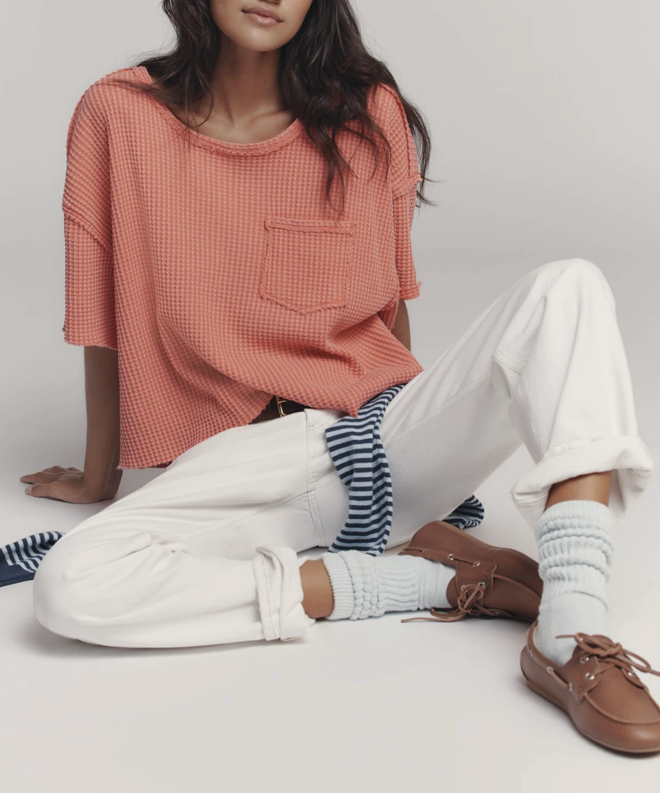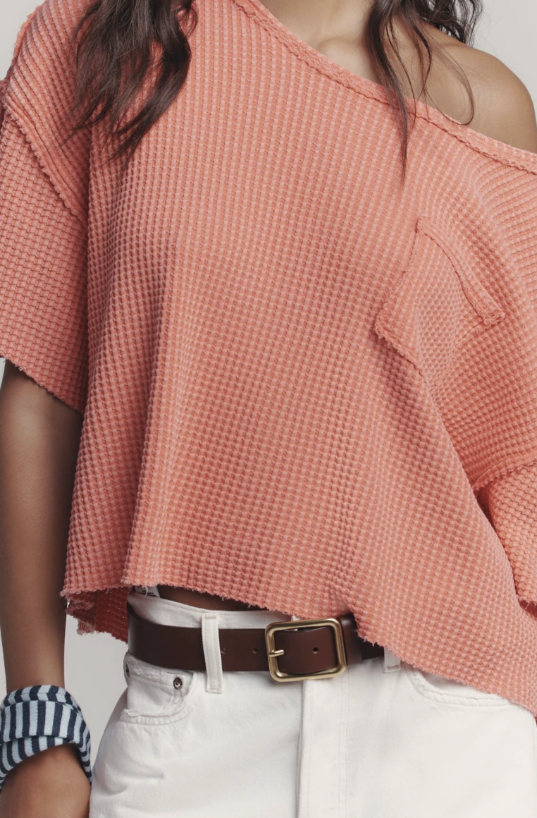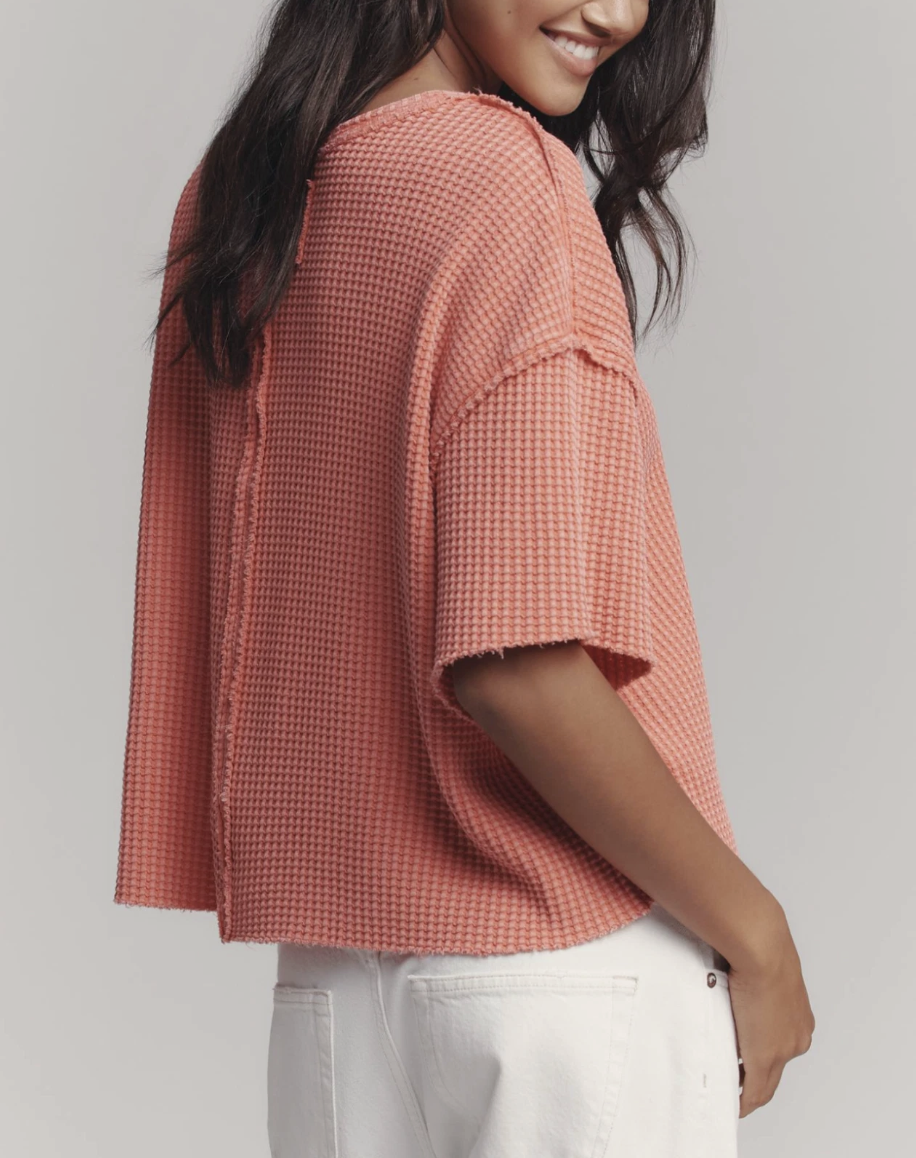 Pilcro by Anthropologie Coral Rose Chest Pocket Waffle Cropped Tee