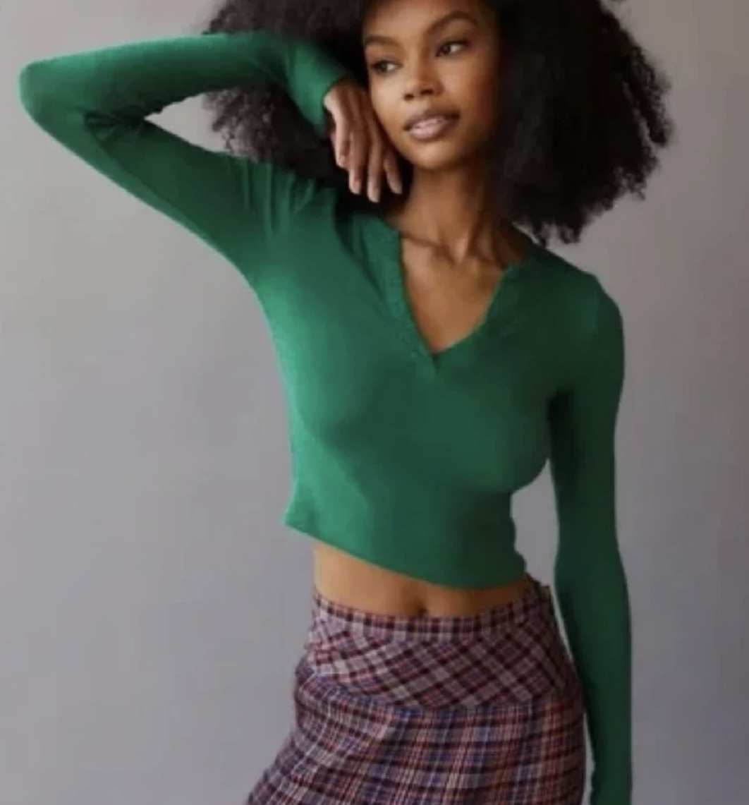 Urban Outfitters BDG Dev Notched Green Long Sleeve Tee Top