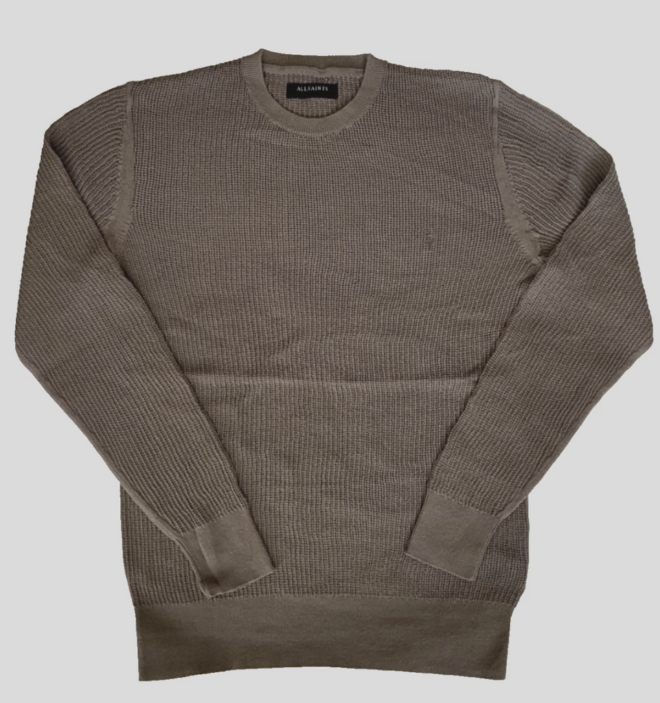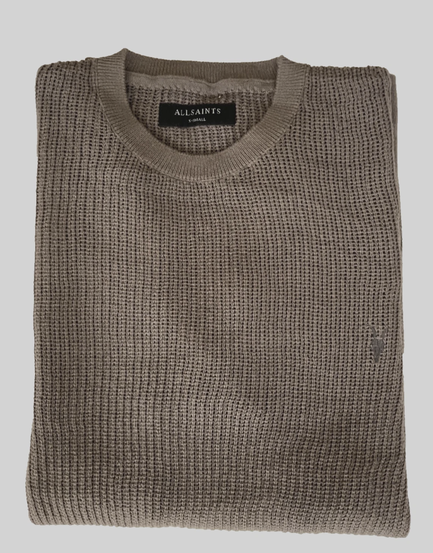 Allsaints Brown Stein Open Weave Crew Neck Ramskull Sweater