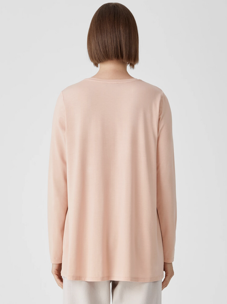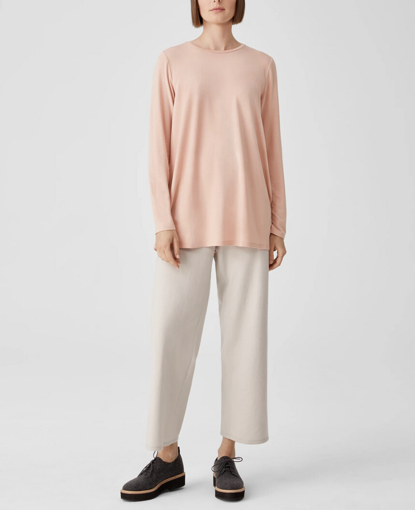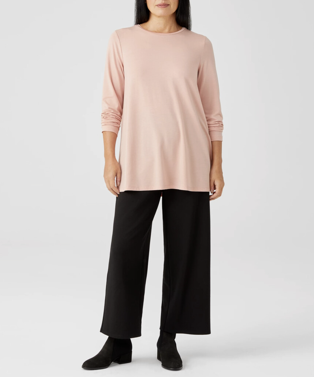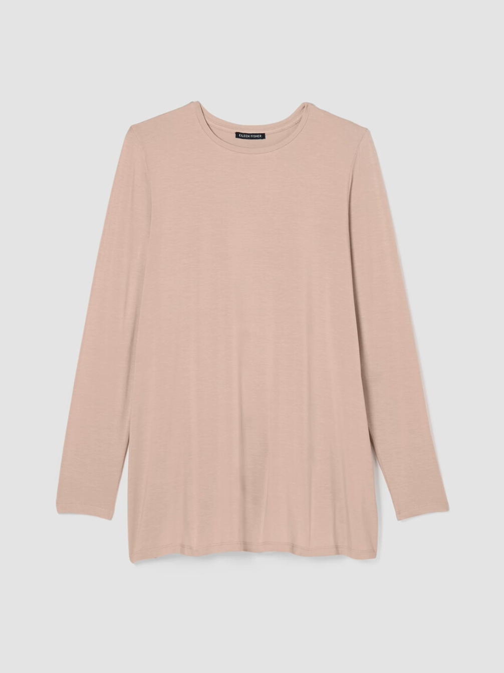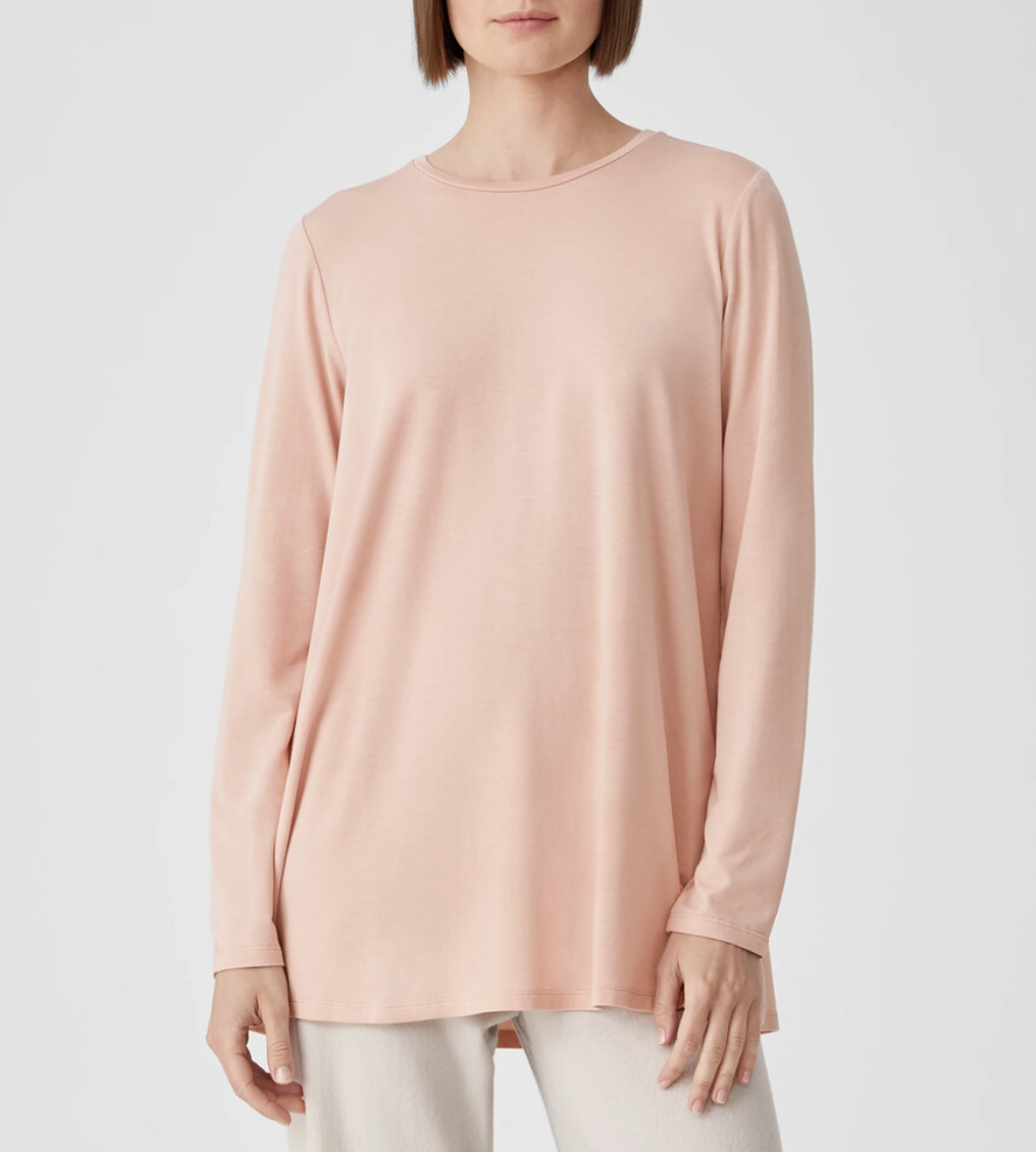 Eileen Fisher Dark Powder Fine Jersey Crew Neck Long Length Top
