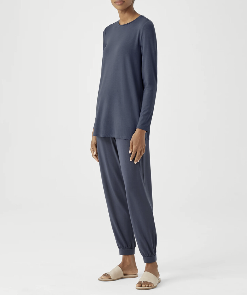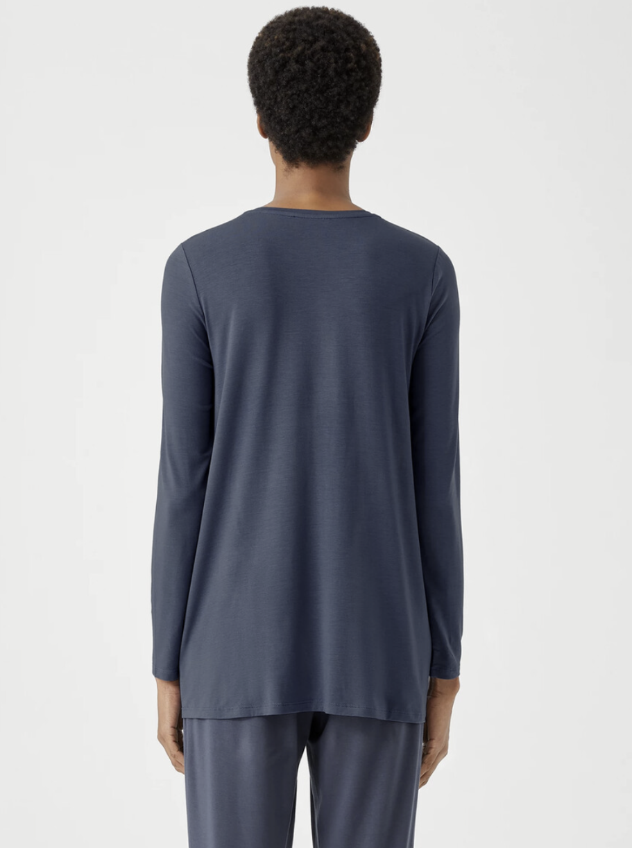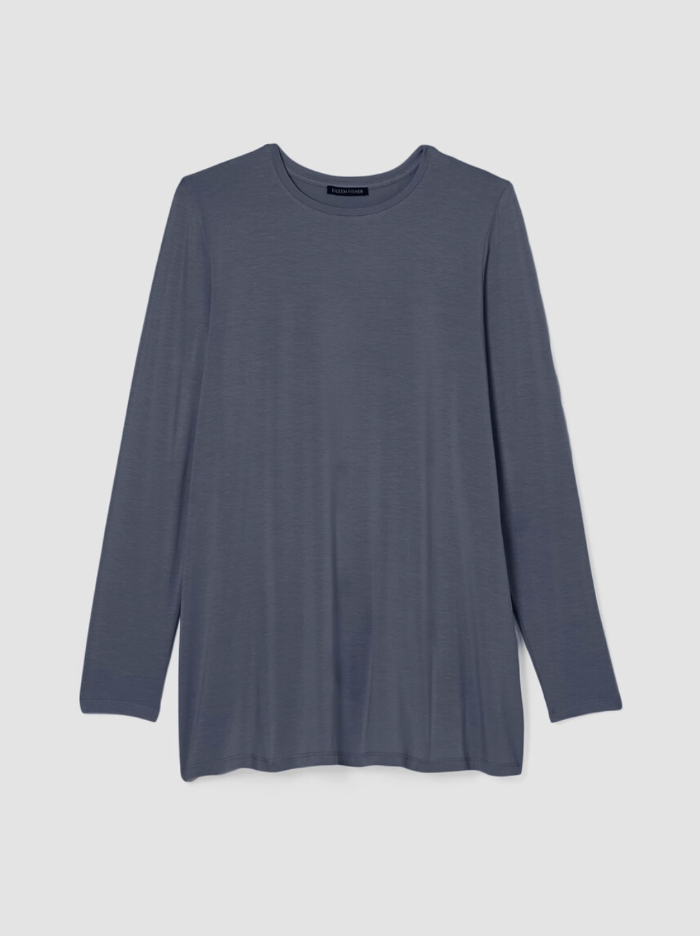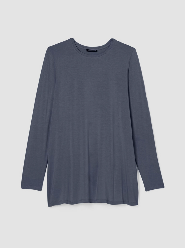 Eileen Fisher Ocean Blue Fine Jersey Crew Neck Long Length Top