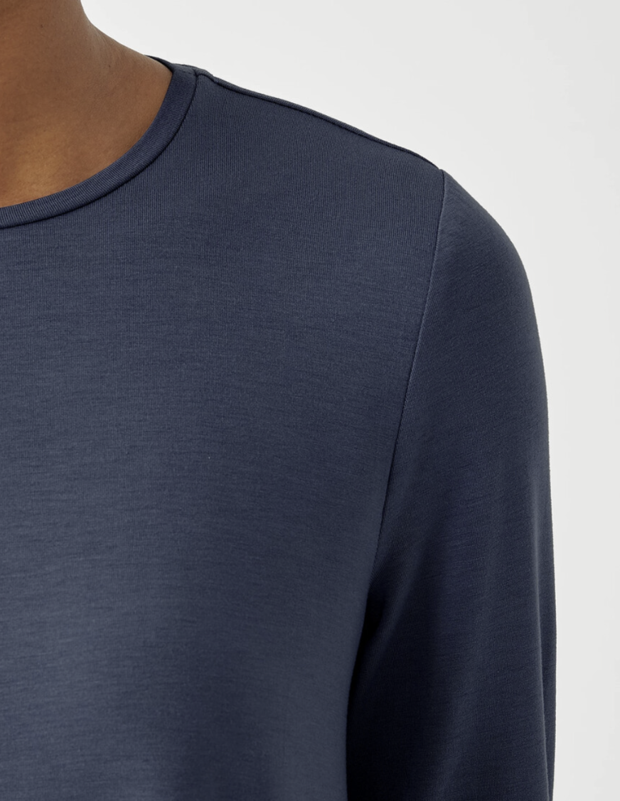 A fluid crew neck top with long, flattering lines. In our sleek and sustainable Fine Jersey.