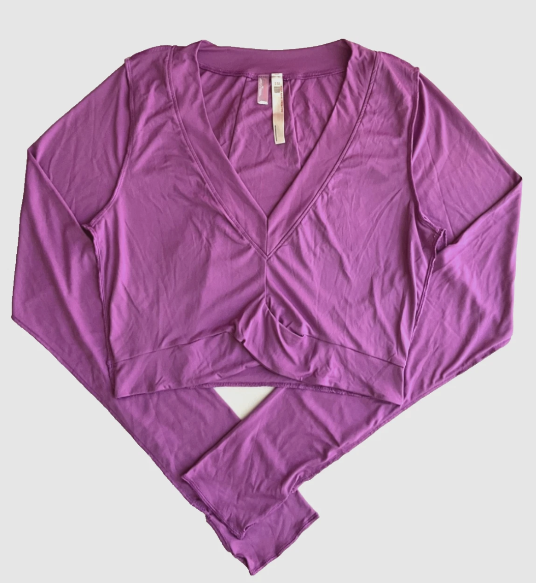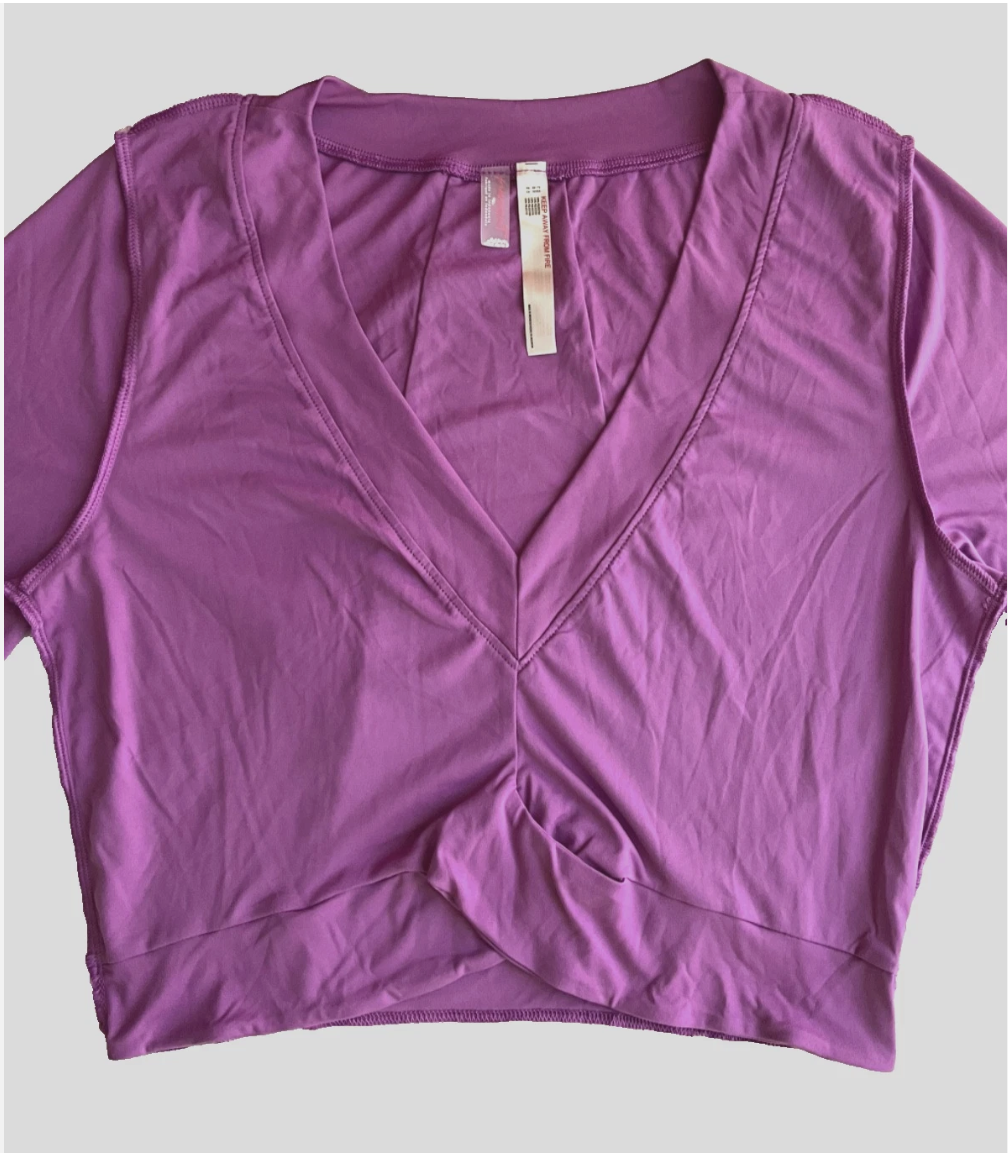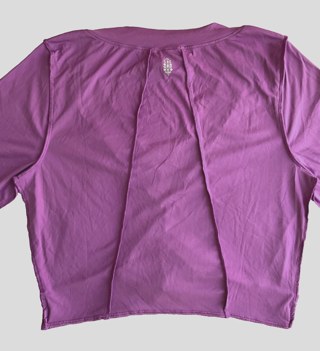 Free People Movement Purple Criss Cross Exposed Seams V-neck Cropped Top