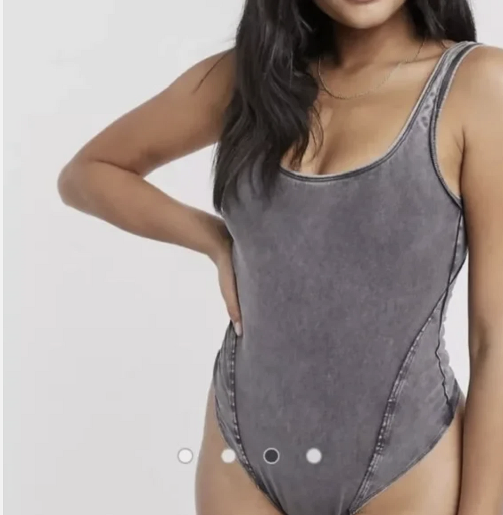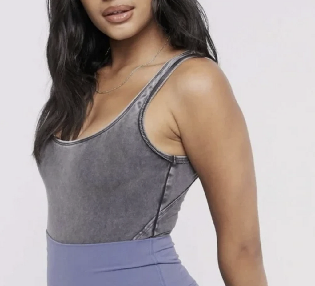 Free People Movement Washed Black Low Scoop Back Thong Hot Shot Bodysuit