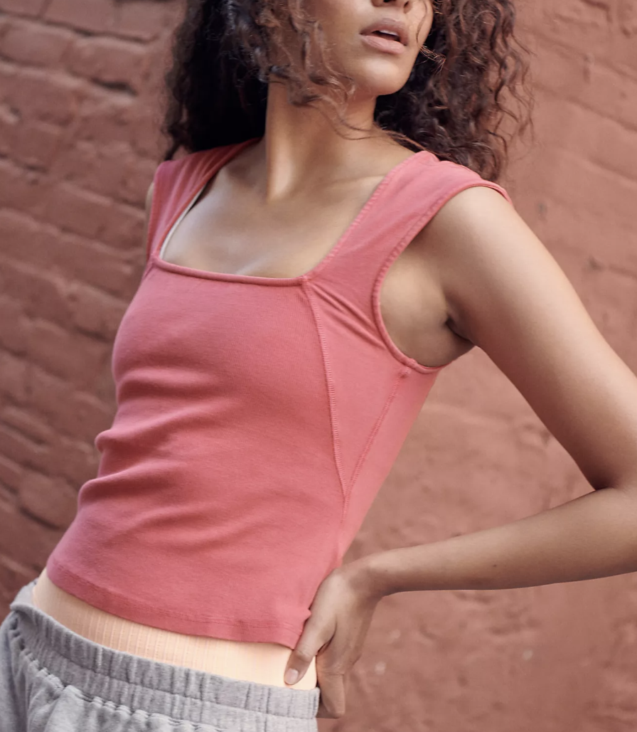 Free People Movement Washed Red Hot Shot Square Neck Tank Top