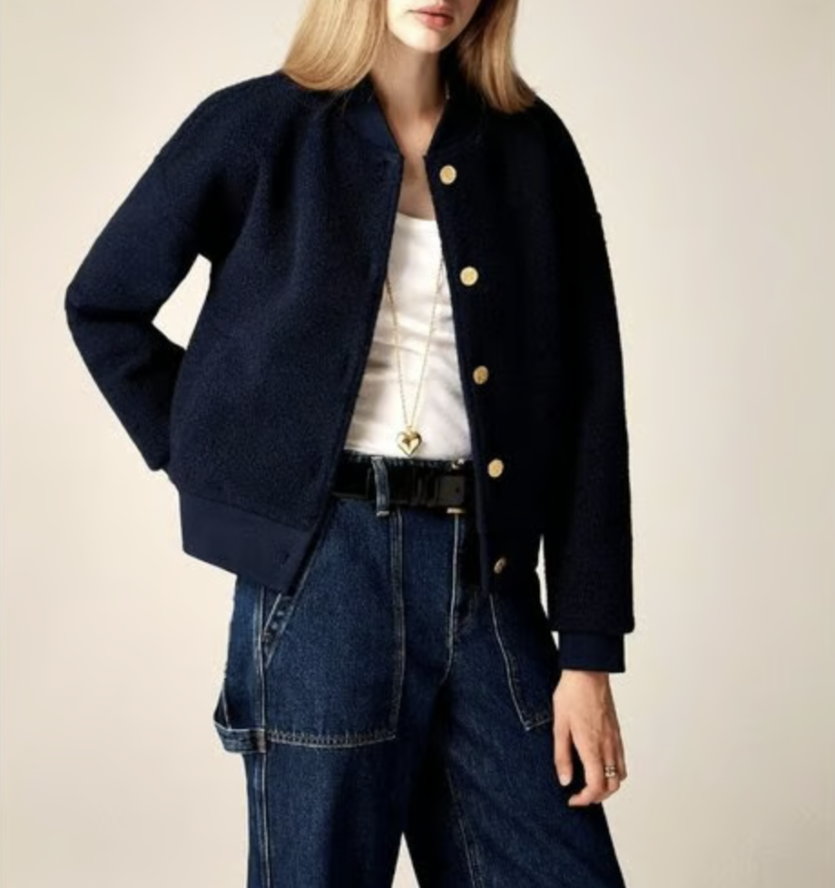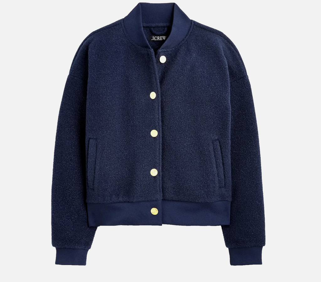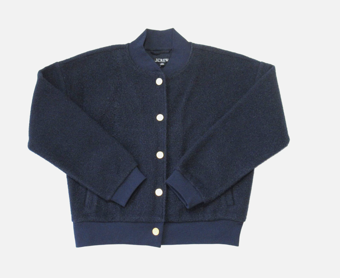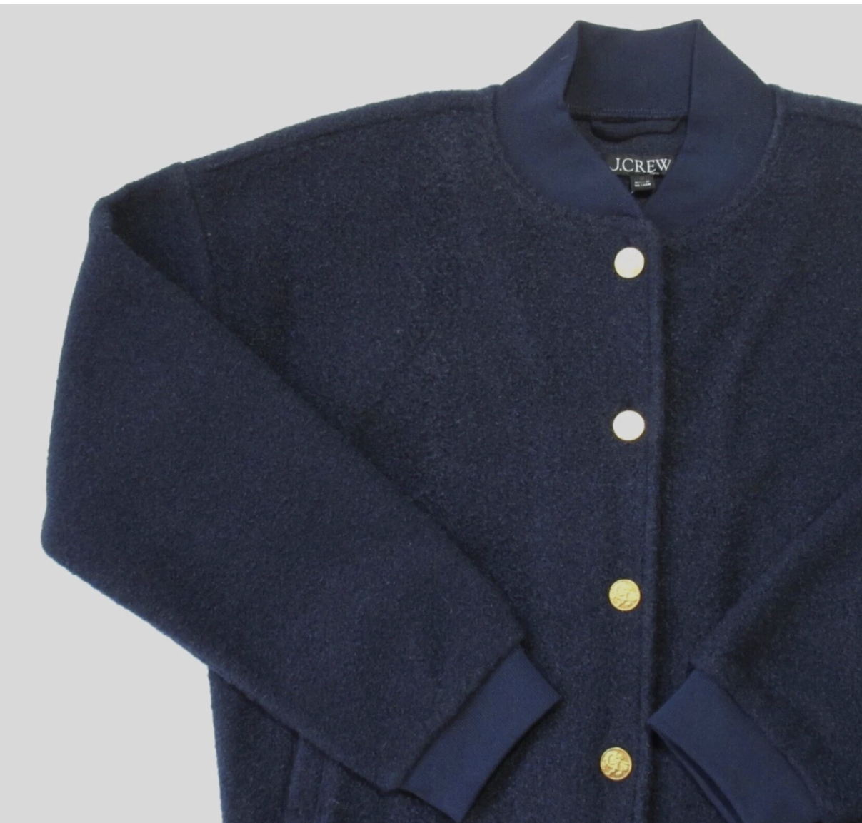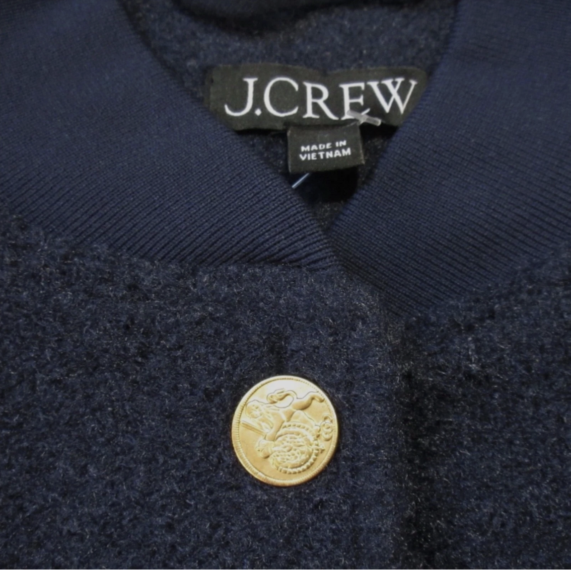 J.Crew Navy Blue Bouclé Gold Buttons Bomber Jacket
