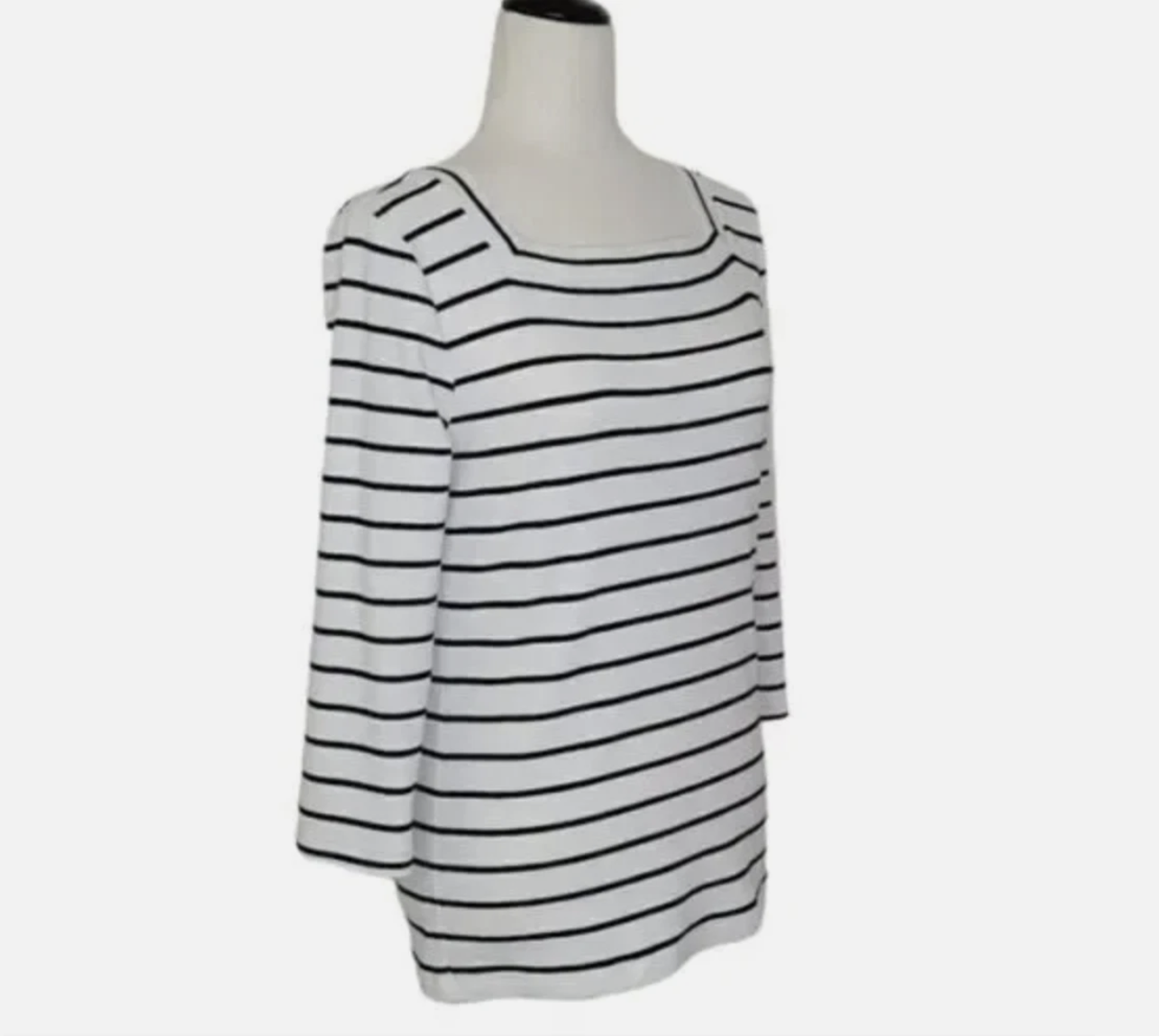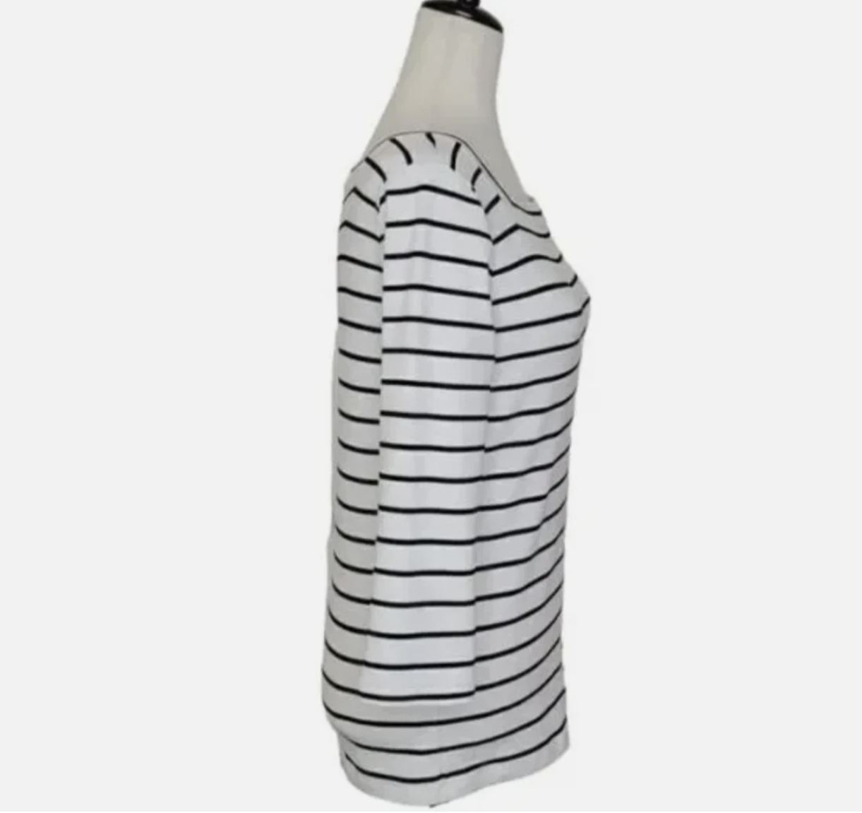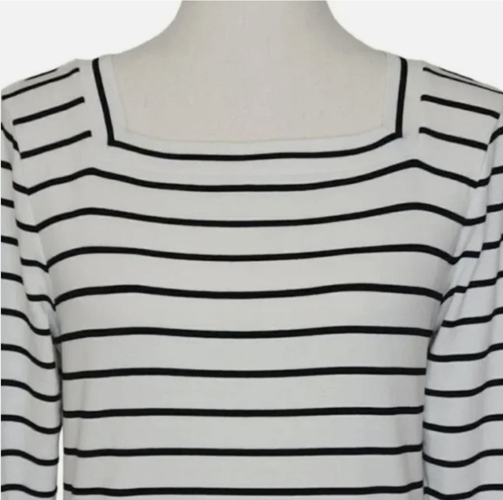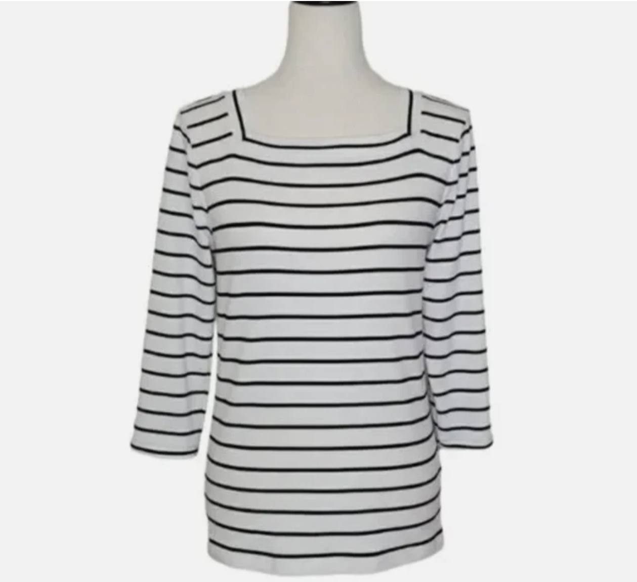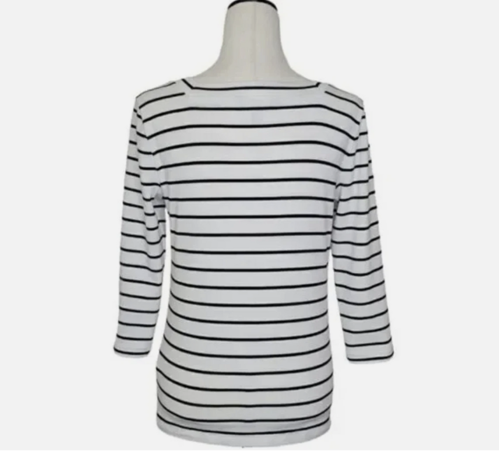 Lauren Ralph Lauren Black White Striped Square Neck 3/4 Sleeve Top