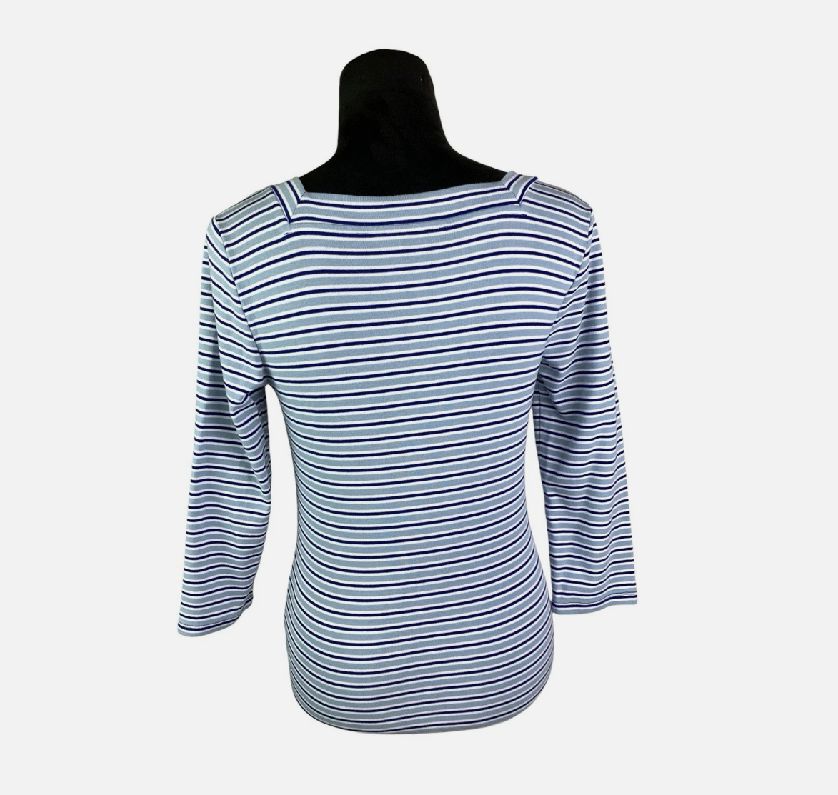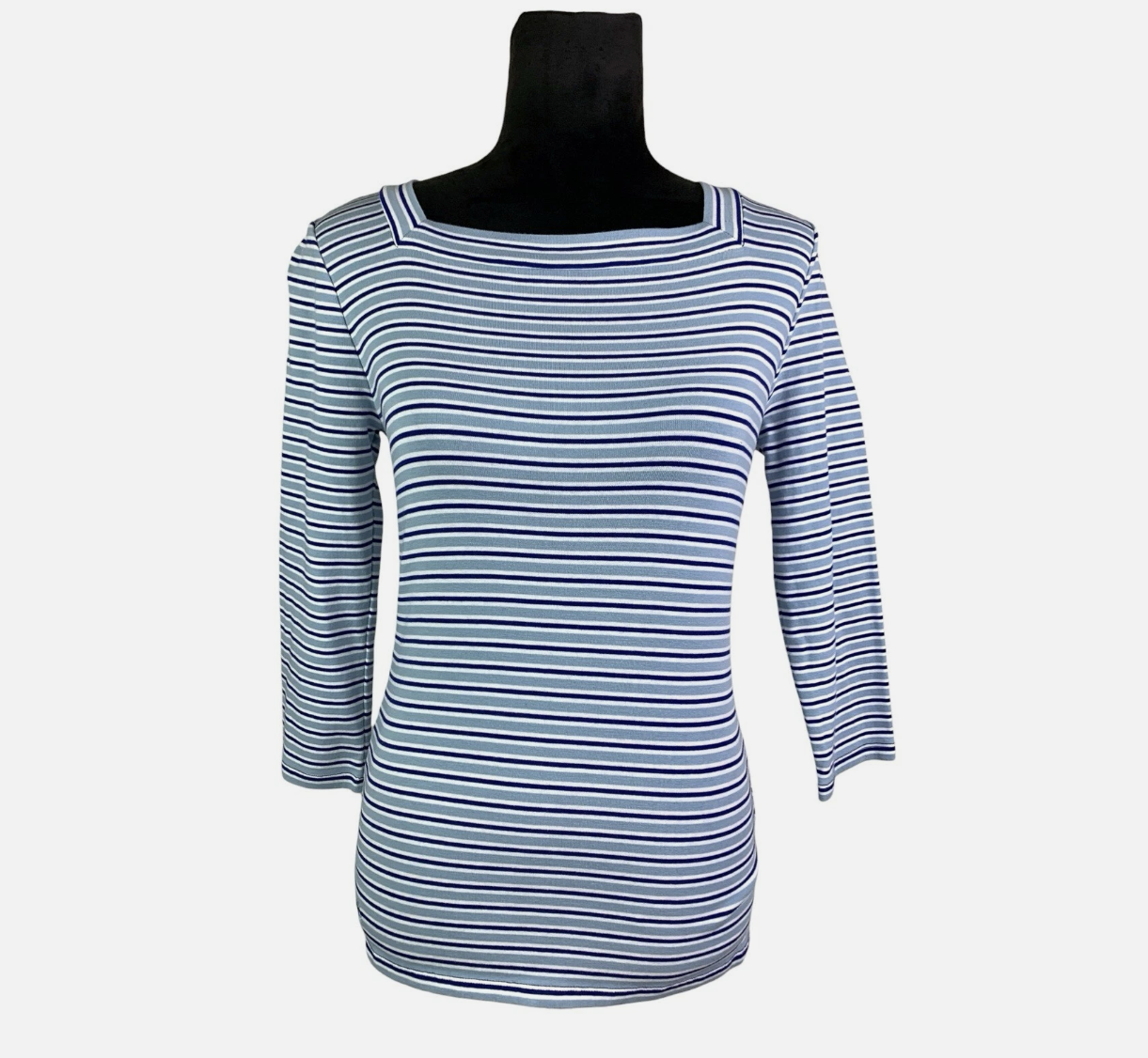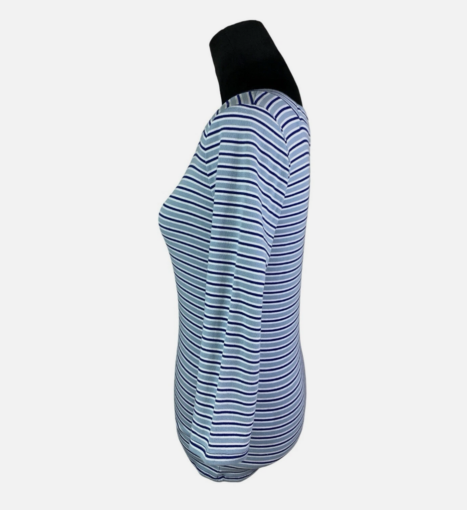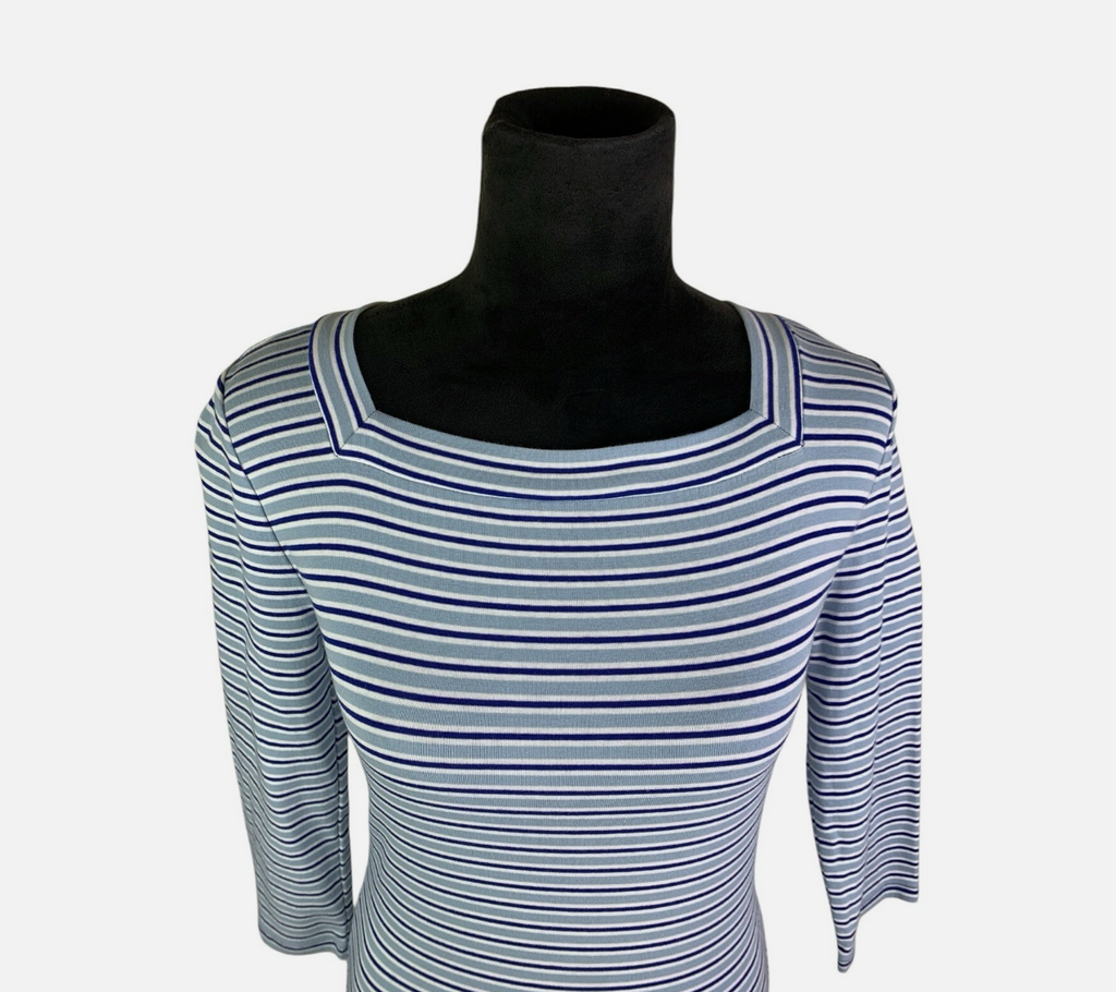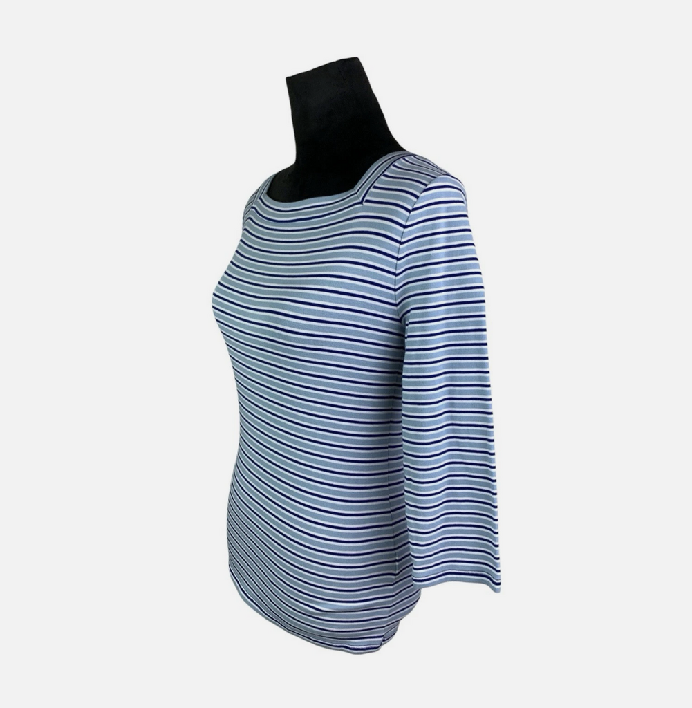 Lauren Ralph Lauren Blue Multi Striped Square Neck 3/4 Sleeve Top