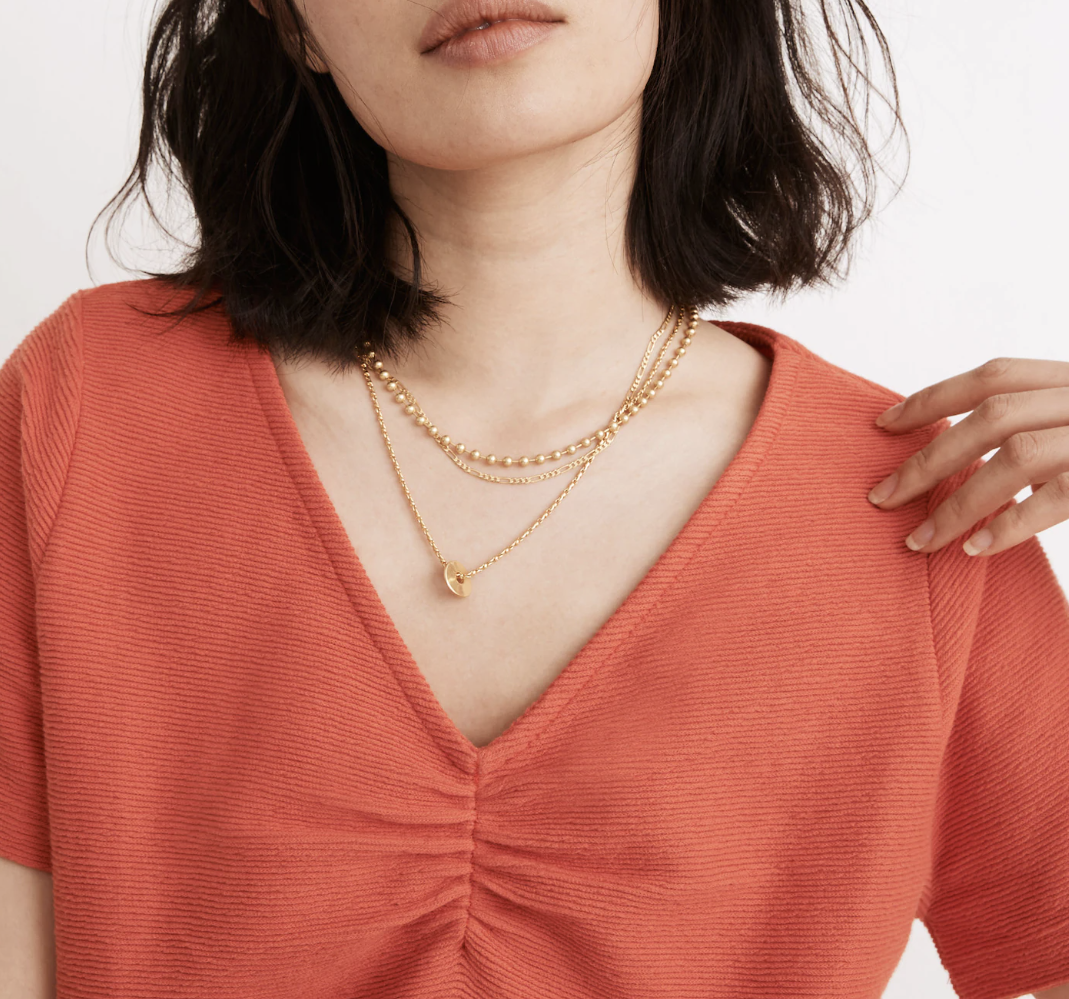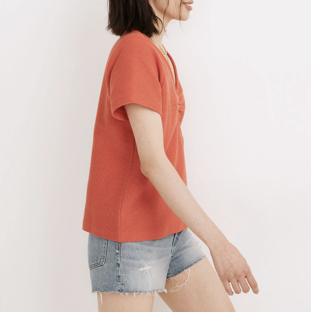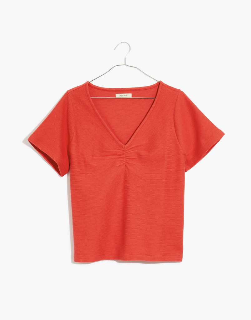 Madewell Blood Orange Ottoman Jacquard Ruched-Front Top