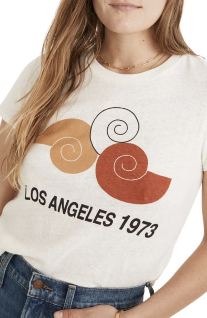 shrunken graphic tee transports you back to 1973 Los Angeles (honestly, what could be better than that?).
