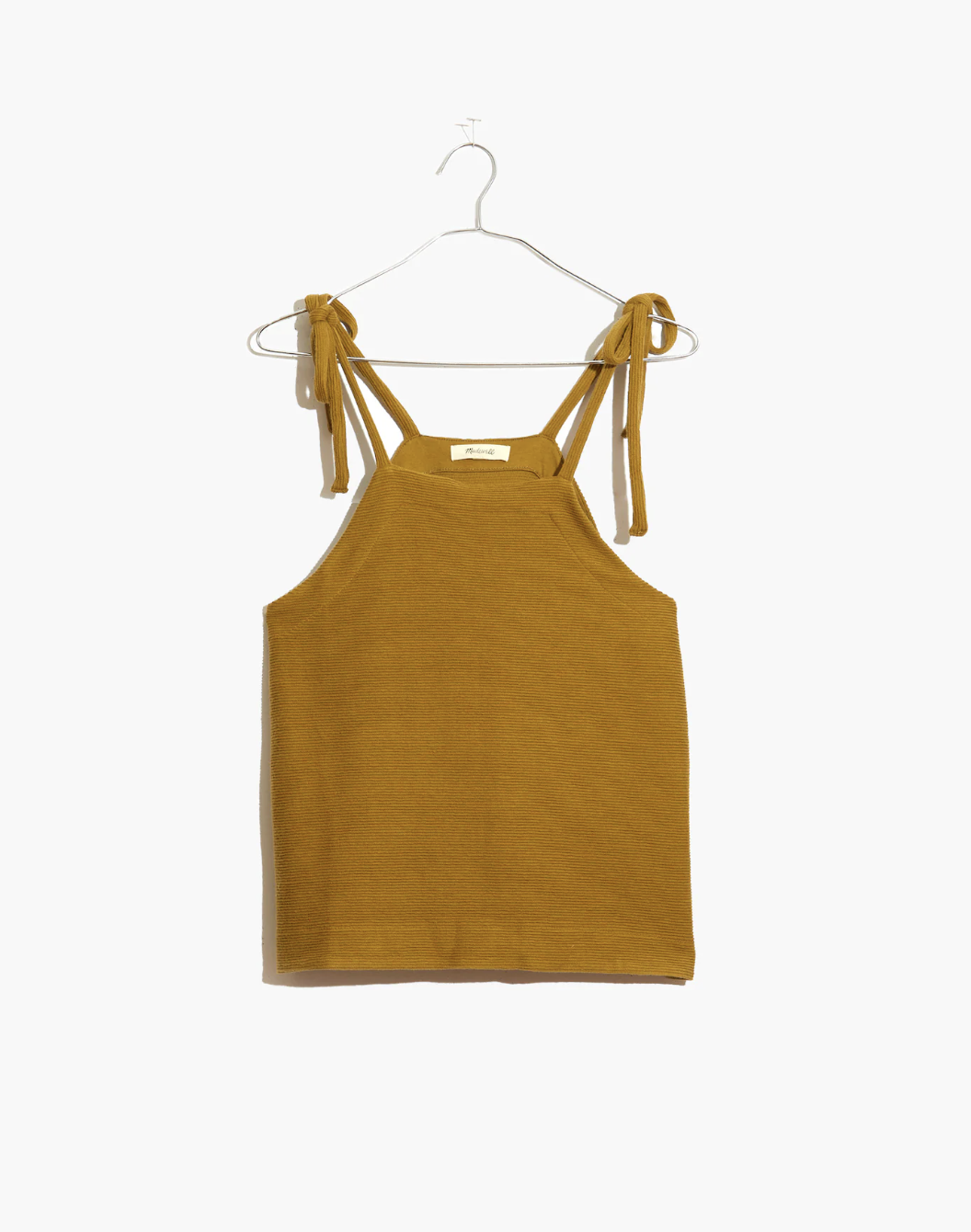 Madewell Spiced Olive Ottoman Jacquard Sleeveless Tie-Shoulder Tank Top