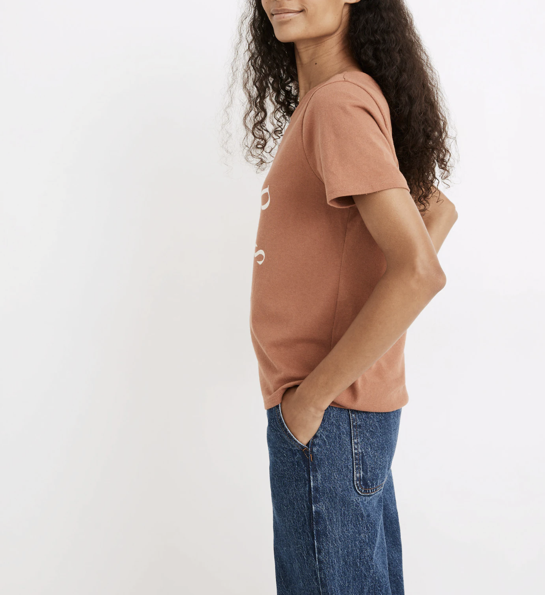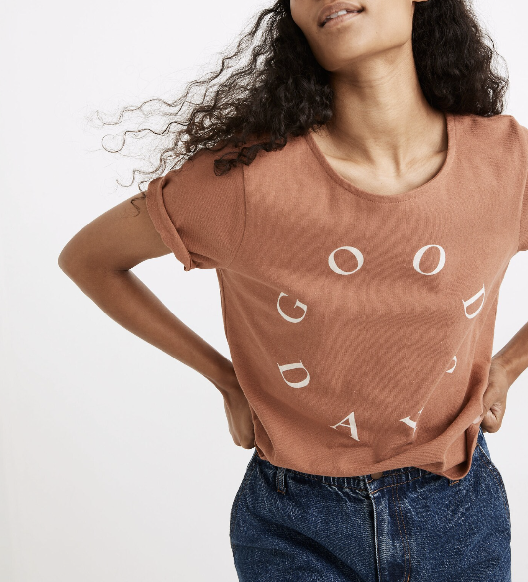 and a just-right graphic tee. This shrunken style is made of weighty 100 percent organic cotton.