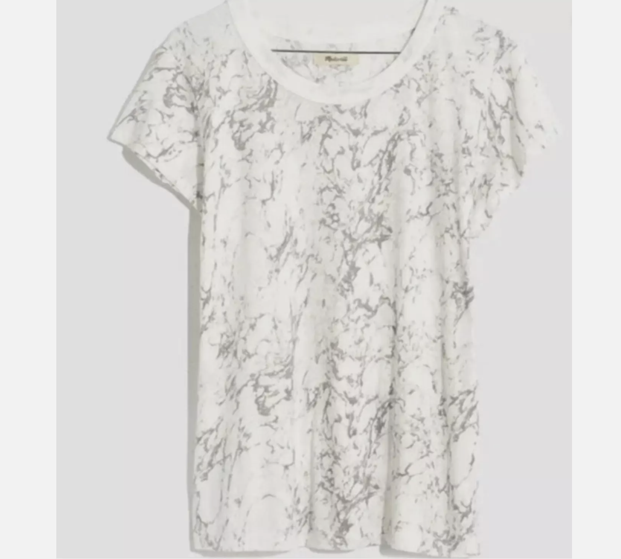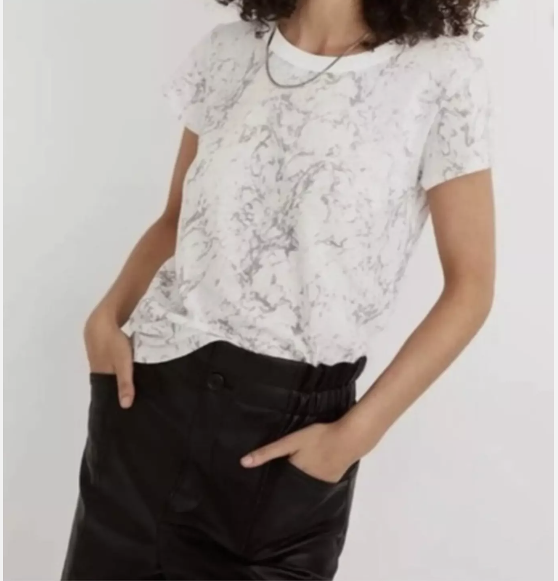 Madewell White Grey Short Sleeve Tie-Dye Marble Vintage Tee