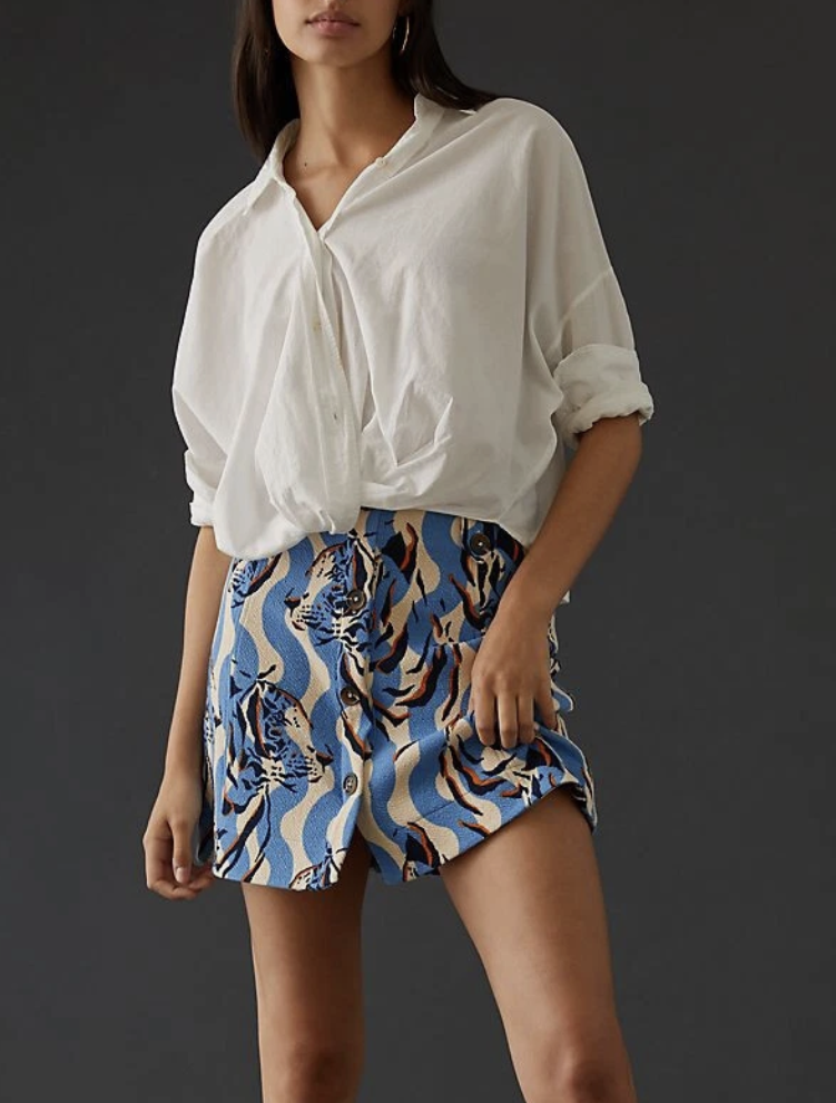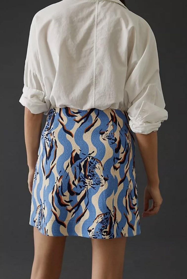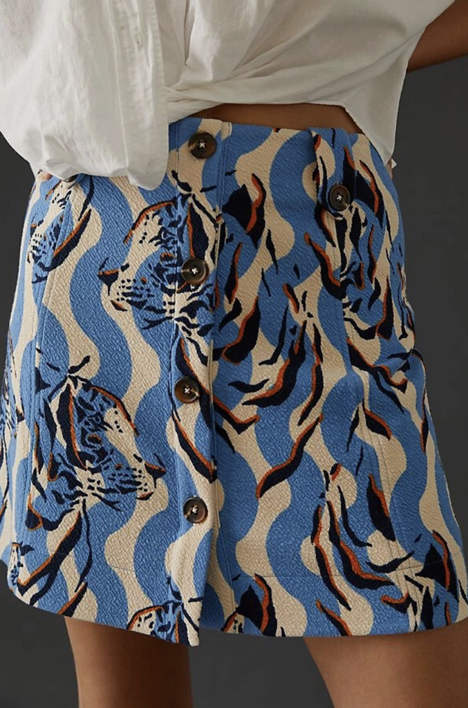 Maeve by Anthropologie Blue Tiger Printed A-line Mini Skirt