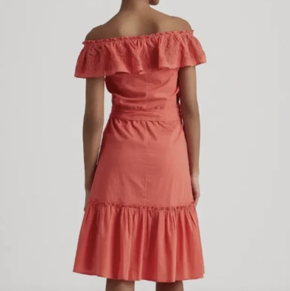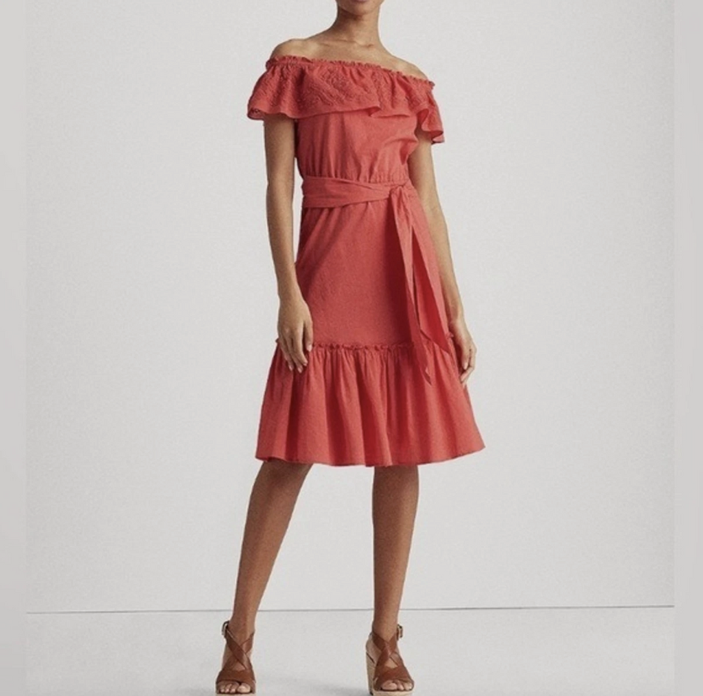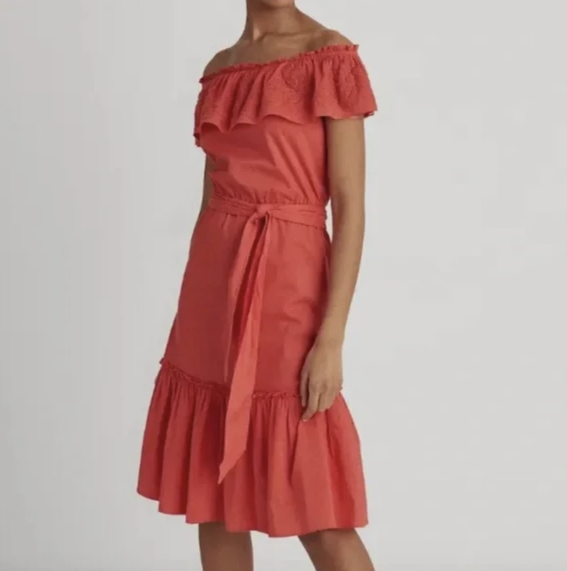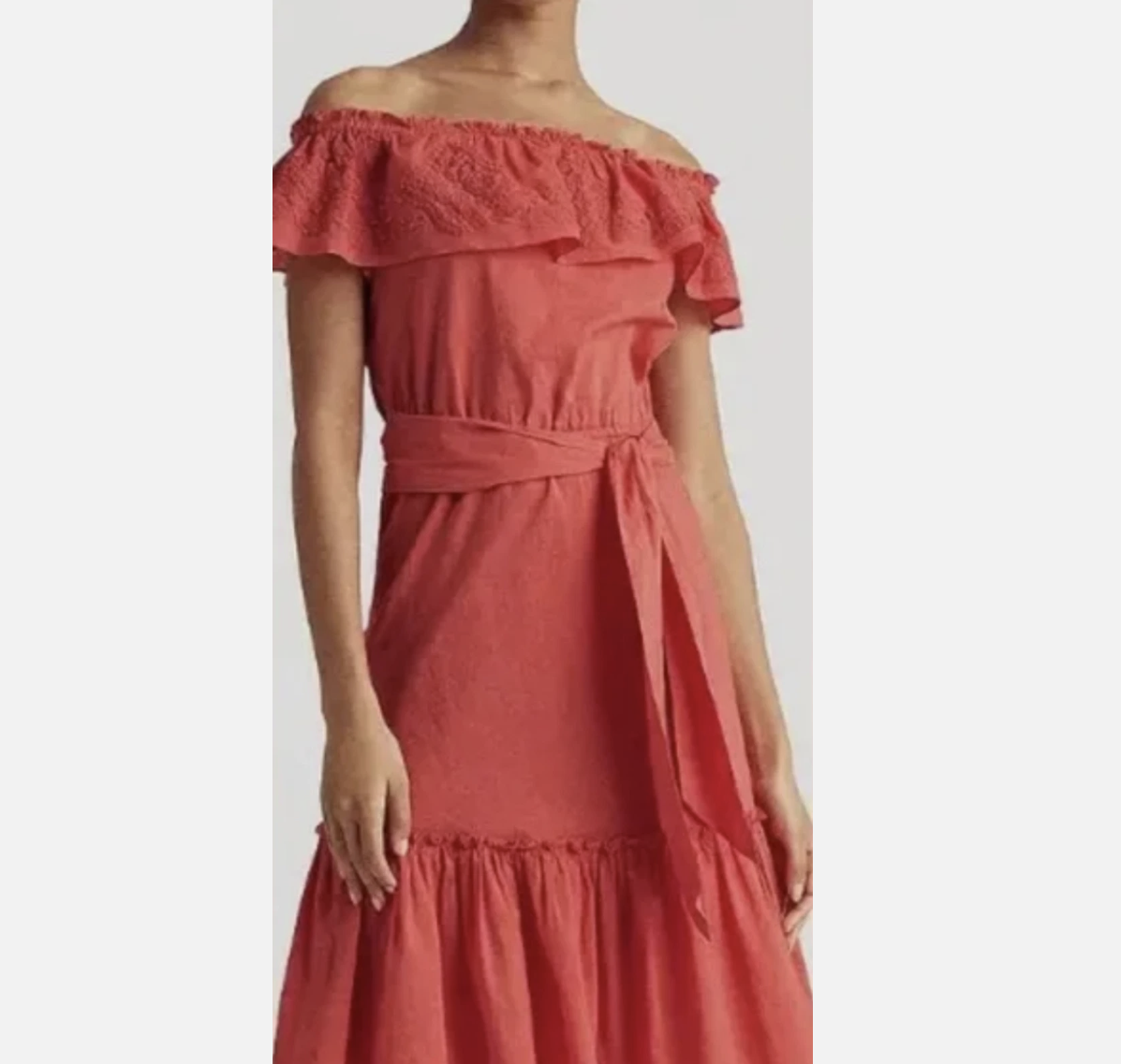 Polo Ralph Lauren Island Hibiscus Off the Shoulder Belted Embroidered Dress