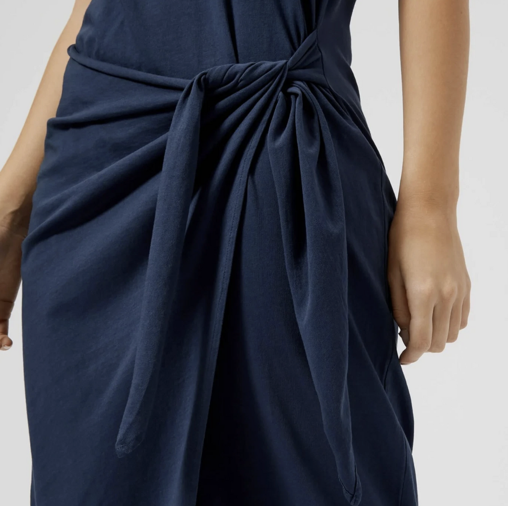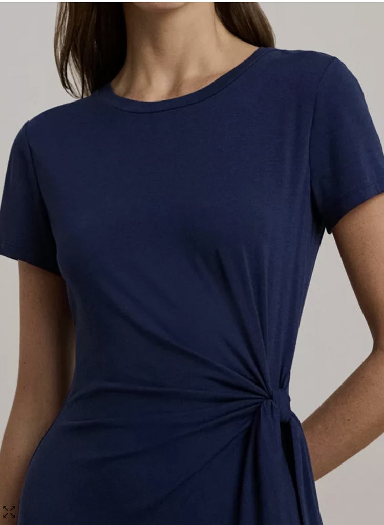 Polo Ralph Lauren Navy Blue Short Sleeve Tie-Front Jersey Dress