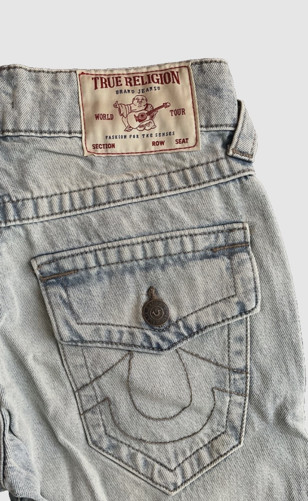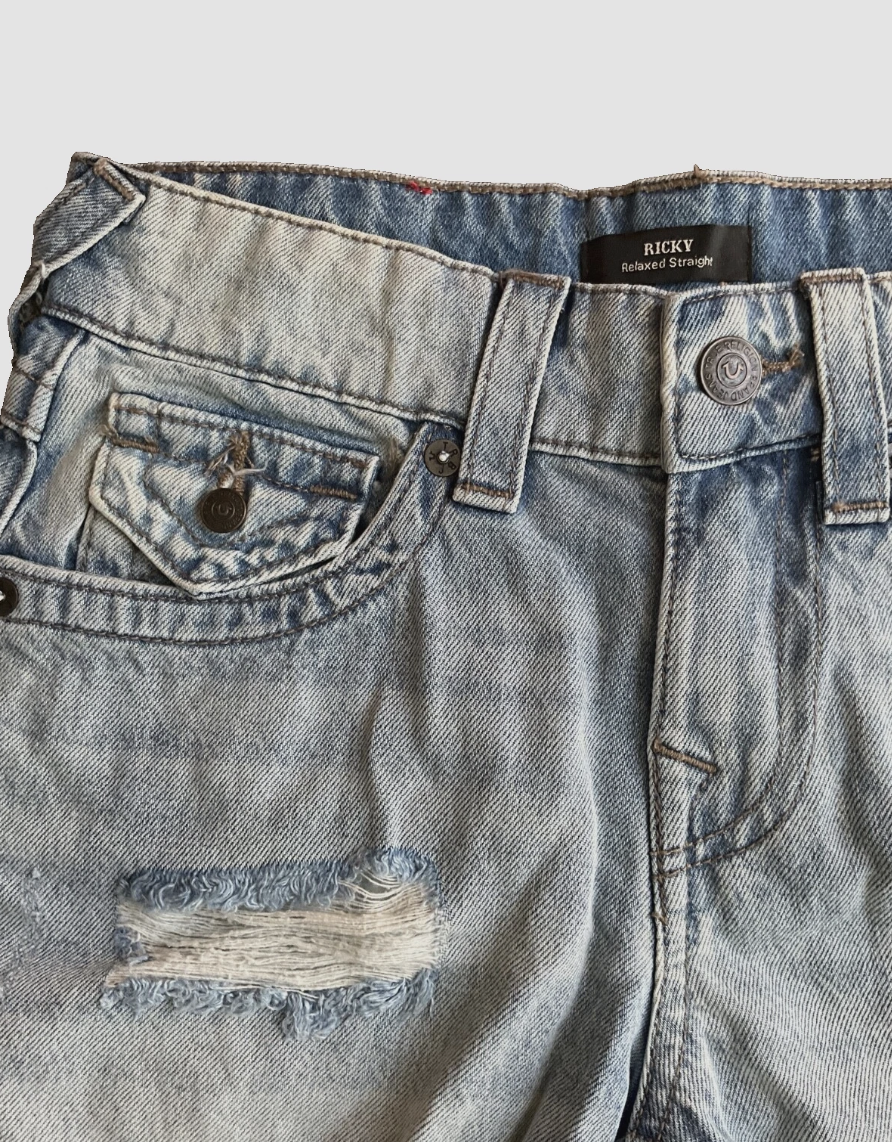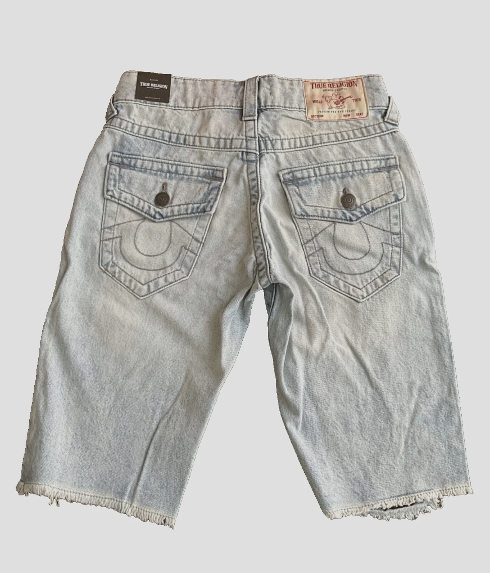True Religion Light Wash Distressed Ricky Relaxed Straight Jean Shorts